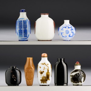 A GROUP OF EIGHT CHINESE GLASS OVERLAY SNUFF BOTTLES
