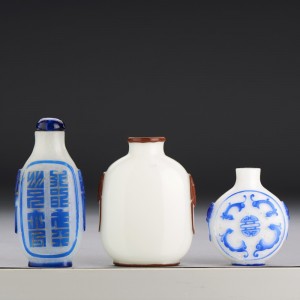 A GROUP OF EIGHT GLASS OVERLAY SNUFF BOTTLES