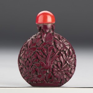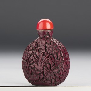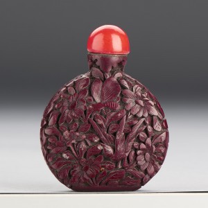A CHINESE CINNABAR LACQUER 'FLOWER AND BIRD' SNUFF BOTTLE