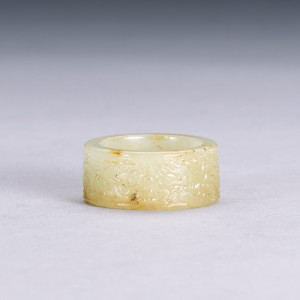 A WHITE JADE 'DOUBLE-DRAGON' RING