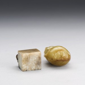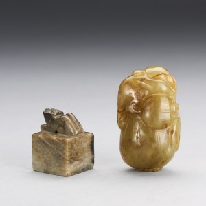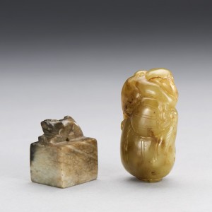 A YELLOW JADE MONKEY AND A BURNT JADE BEAST SEAL