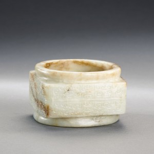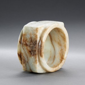 A WHITE AND RUSSET JADE 'CLOUD SCROLL' CONG