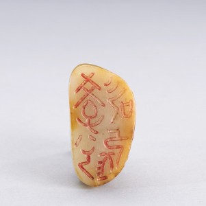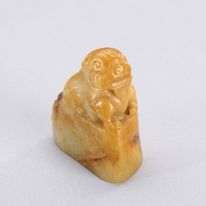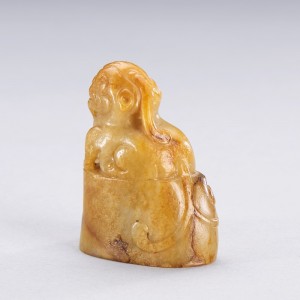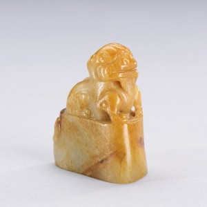 A CHINESE WHITE AND RUSSET JADE BEAST SEAL