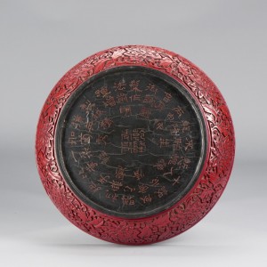 A CHINESE IMPERIALLY INSCRIBED CINNABAR LACQUER CIRCULAR BOX AND COVER