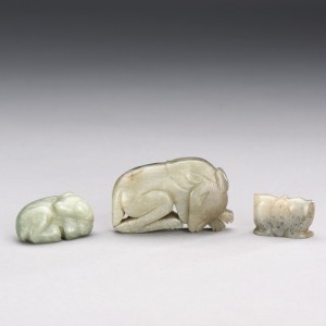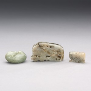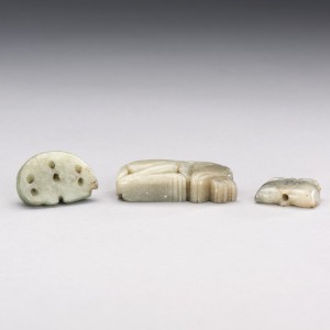 TWO CHINESE JADE BEARS AND A JADE PEACHES-FORM PENDANT