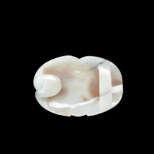 A FINELY CARVED WHITE JADE HORSE-SHAPED BELT BUCKLE