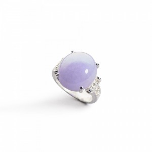 A LAVENDER JADEITE CABOCHON AND DIAMOND RINGUS ring size 6 1/2, cabochon is approximately 16.50 x 14.56 x 7.99 mmAccompanied with Hong Kong Jade & Stone Laboratory certificate stating that the jadeite is natural, known in the trade as "A jade".