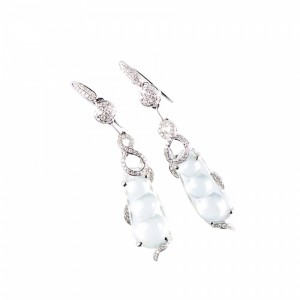 A PAIR OF ICY JADEITE AND DIAMOND PEAPODS PENDANT EARRINGS