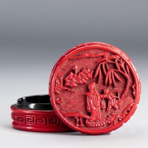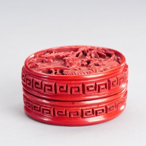 A CINNABAR LACQUER CIRCULAR BOX AND COVER