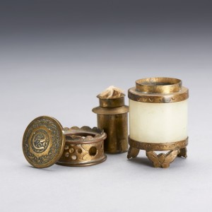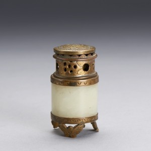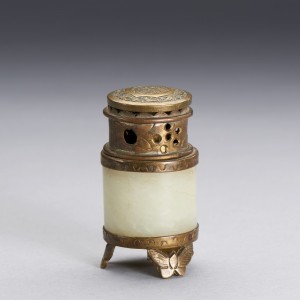 A 'WHITE JADE ARCHER'S RING'-EMBELLISHED BRONZE ALCOHOL BURNER