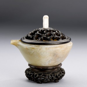 A WHITE JADE LOOP-HANDLED WATER DROPPER