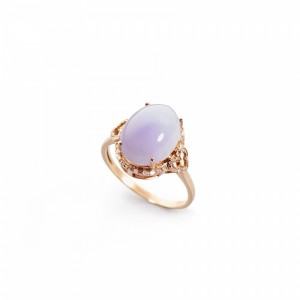 A LAVENDER JADEITE CABOCHON AND DIAMOND RING