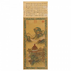 Ziqiong Daoren (1711-1758)PAVILIONink and colour on silk, hanging scroll, inscribed, singed YUN XI and with seven seals29 x 61.5 cm (11 3/8 x 24 1/4 in)