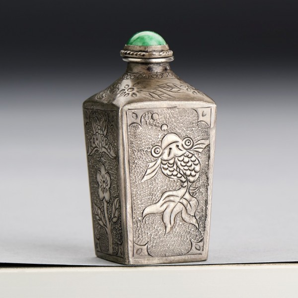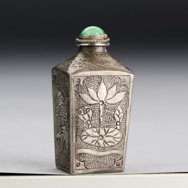 A CHINESE SILVER SNUFF BOTTLE