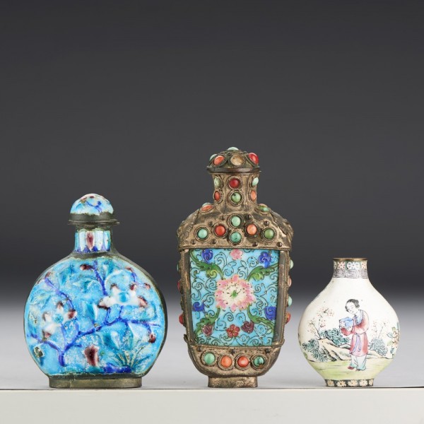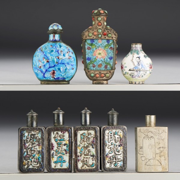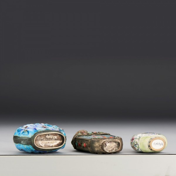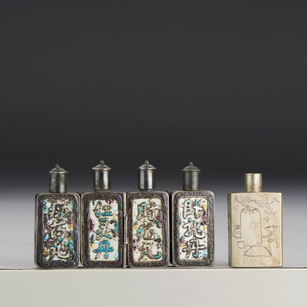 A GROUP OF FIVE CHINESE PAINTED ENAMEL SNUFF BOTTLES