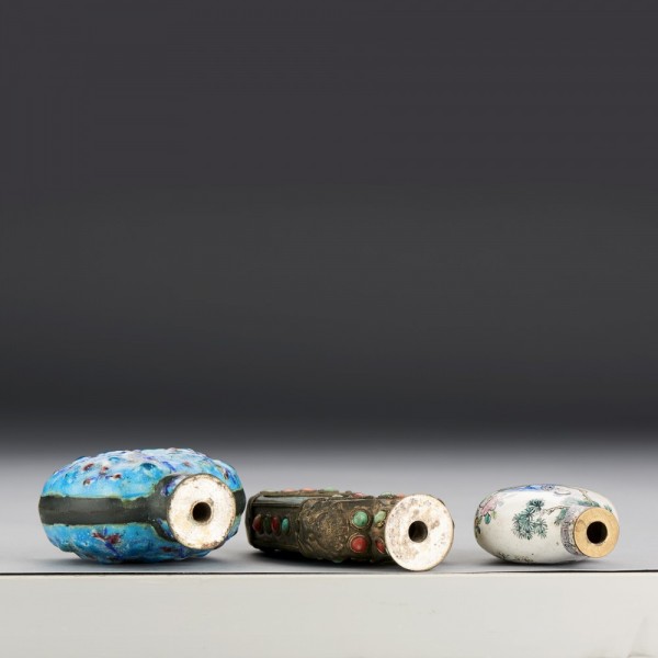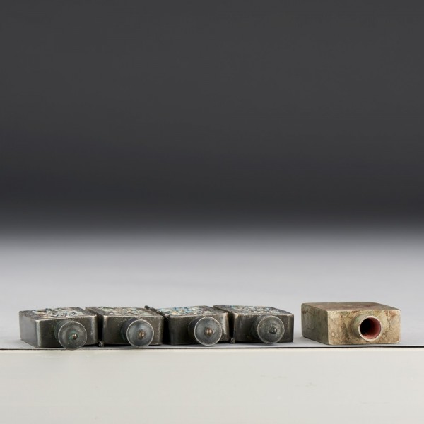 A GROUP OF FIVE PAINTED ENAMEL SNUFF BOTTLES