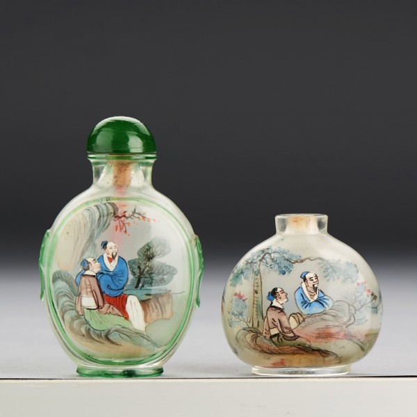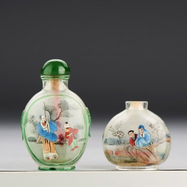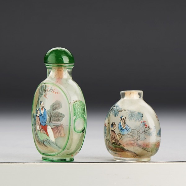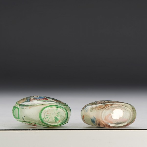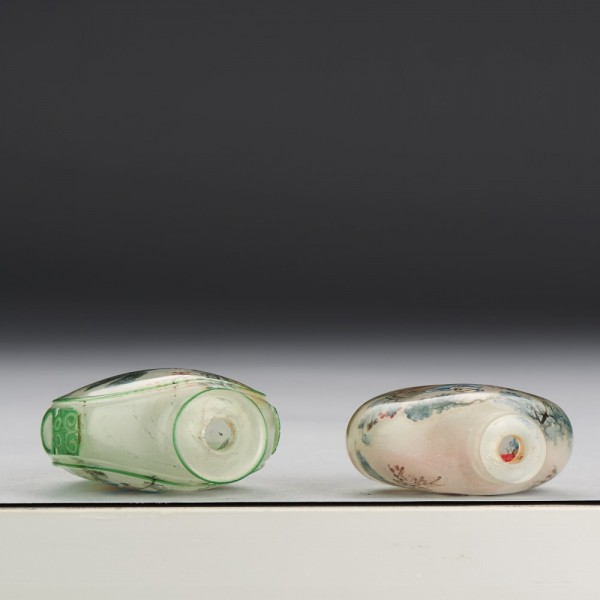 A GROUP OF TWO GLASS SNUFF BOTTLES WITH INNER PAINTING