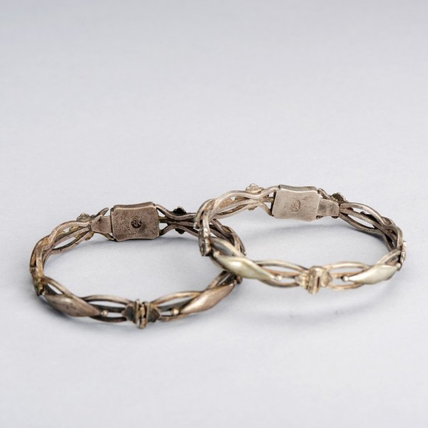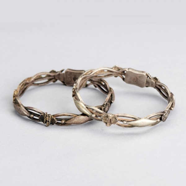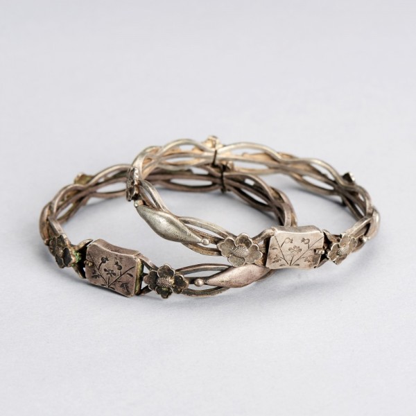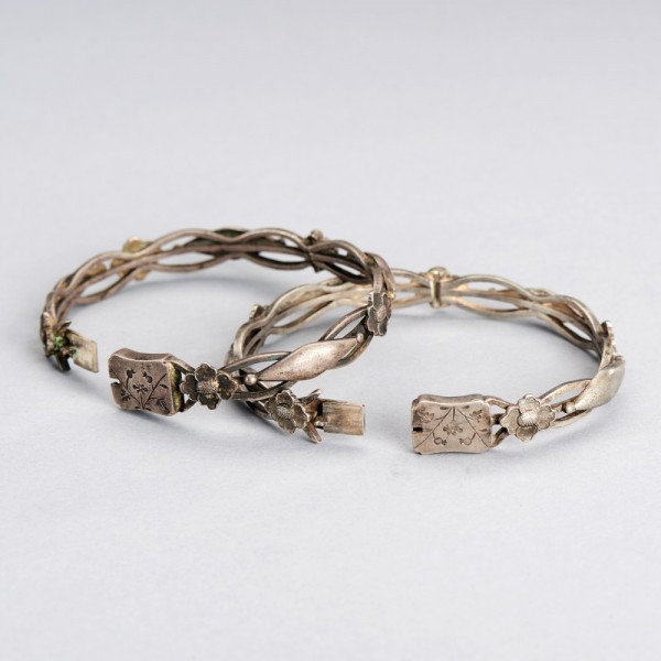 A PAIR OF PIERCED SILVER FLORAL BANGLES