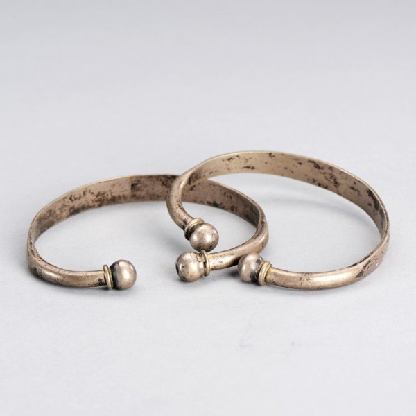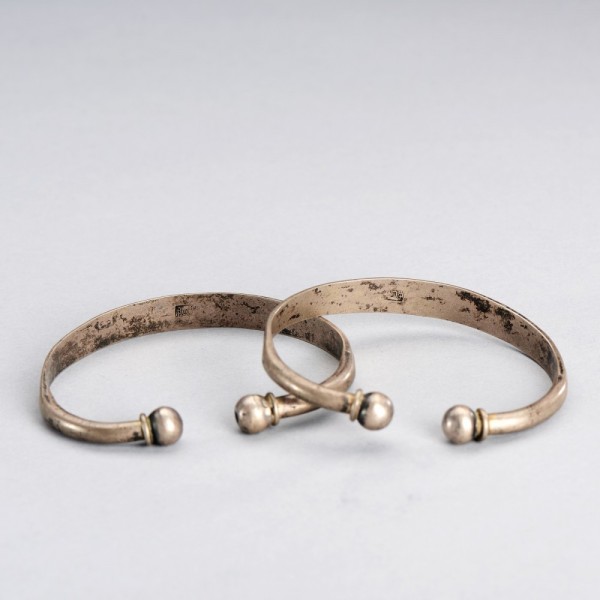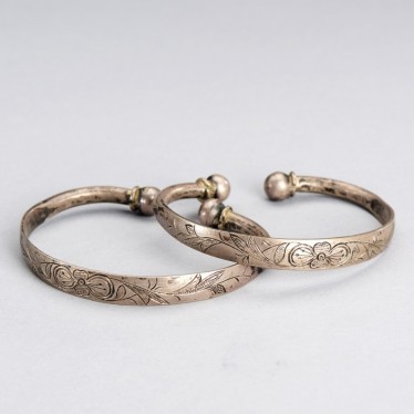 A PAIR OF CHINESE SILVER FLORAL BANGLES