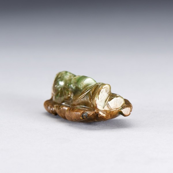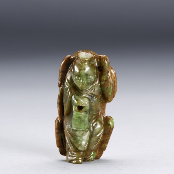A SPINACH-GREEN AND RUSSET JADE FIGURINE