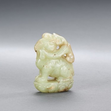 A CHINESE YELLOW JADE MYTHICAL DEER