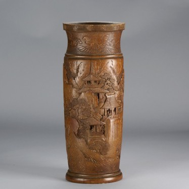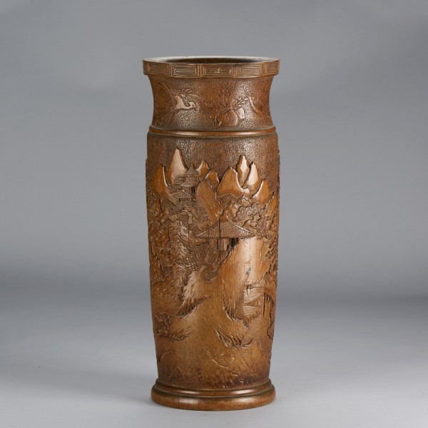 A BAMBOO CARVED LANDSCAPE VASE