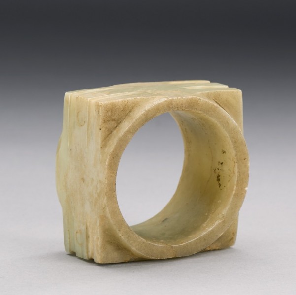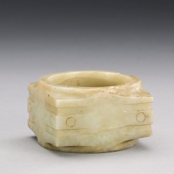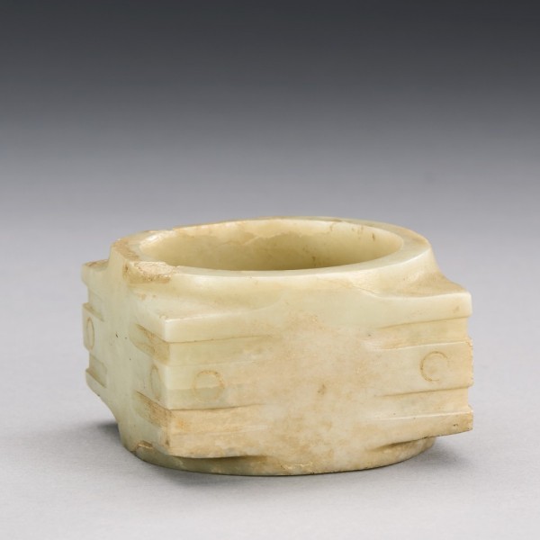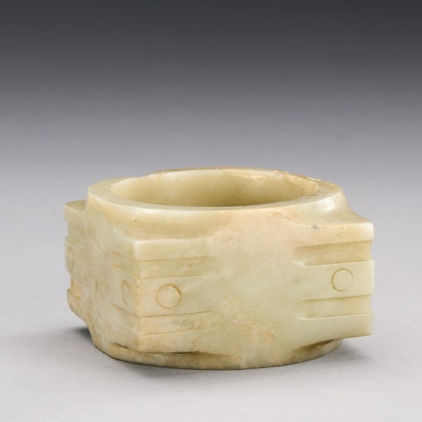 A CHINESE WHITE JADE MASK-FORM CONG