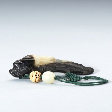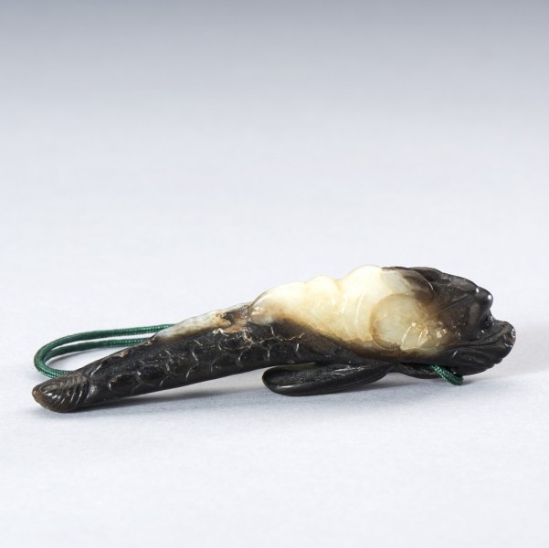 A WHITE AND RUSSET JADE DRAGON-CARP PENDANT