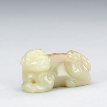 A CHINESE WHITE JADE RECUMBENT BEAST