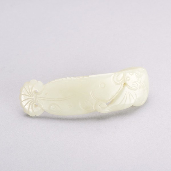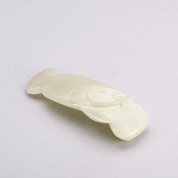 A CHINESE WHITE JADE 'CATFISH AND BAT' INKSTICK REST