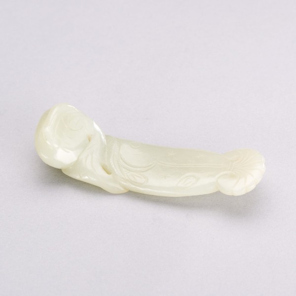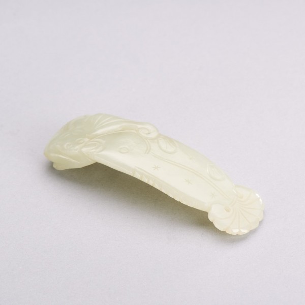 A WHITE JADE 'CATFISH AND BAT' INKSTICK REST