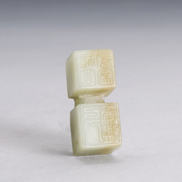 A WHITE JADE DOUBLE SEALQING DYNASTY (1644-1911)L 3.5 cm (1 3/8 in)The impression character(s) unlisted
