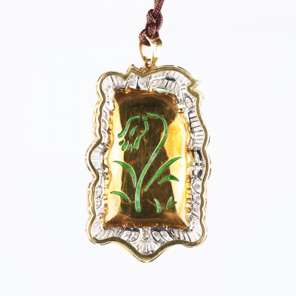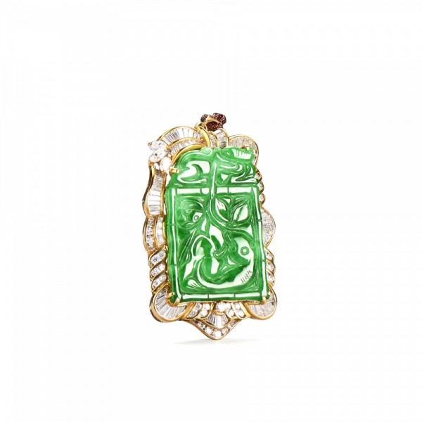 A CHINESE GOLD-MOUNTED JADEITE AND DIAMOND PENDANT