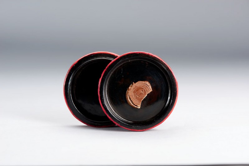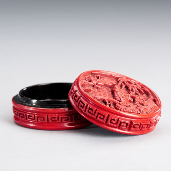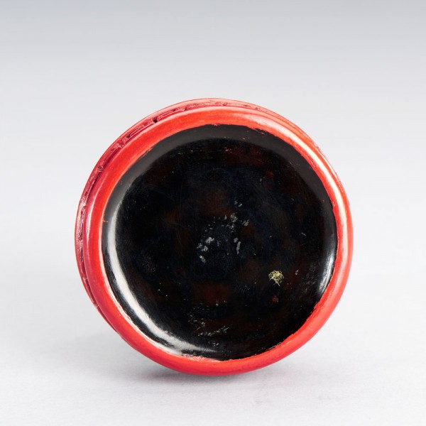 A CINNABAR LACQUER CIRCULAR BOX AND COVER