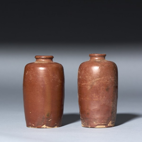 A PAIR OF CHINESE BROWN-GLAZED VASES