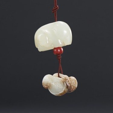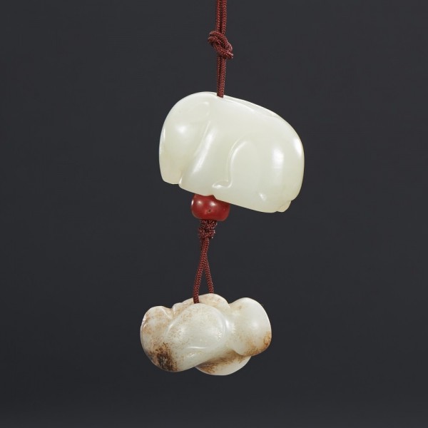 A WHITE JADE BEAR AND AN UNEARTHED WHITE JADE BONE-SHAPED PENDANT
