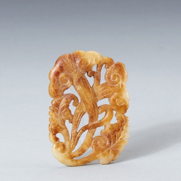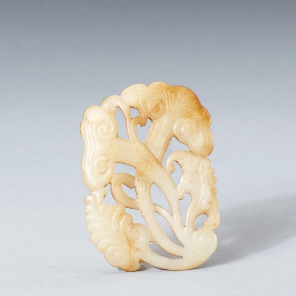 A WHITE AND RUSSET JADE LINGZHI PENDANT