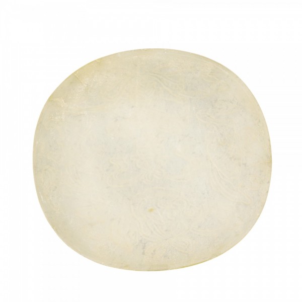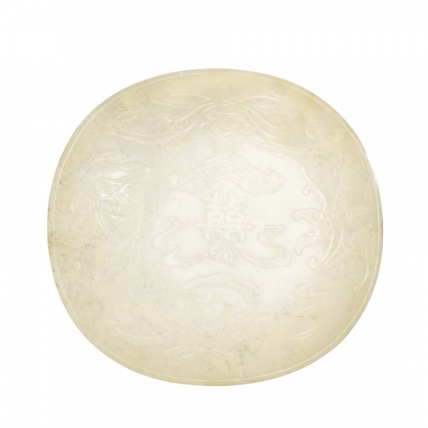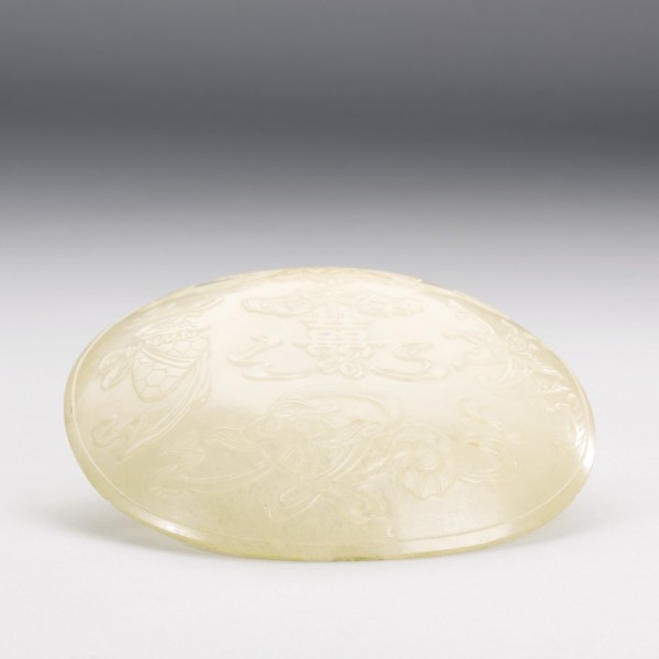 A WHITE JADE 'EIGHT BUDDHIST EMBLEMS' ORNAMENT