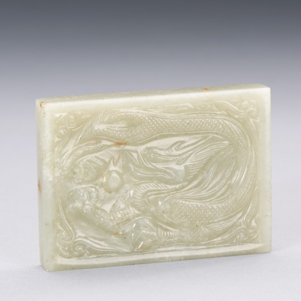 A PALE CELADON JADE DRAGON BELT PLAQUE