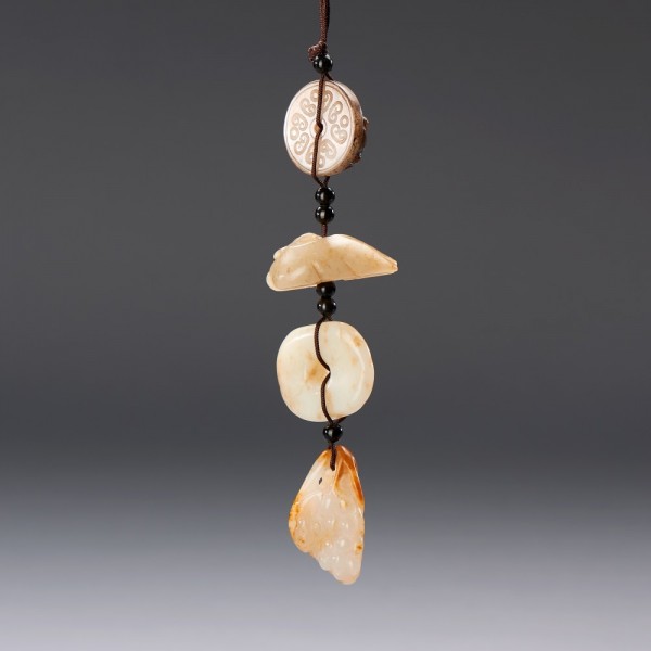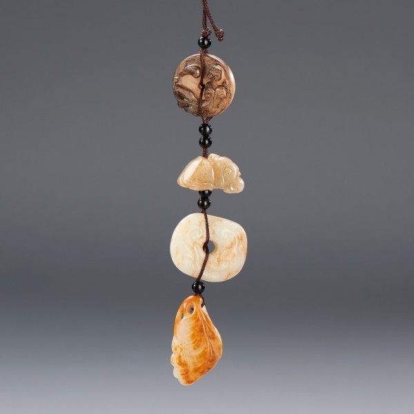 A GROUP OF FOUR WHITE JADE PENDANTS