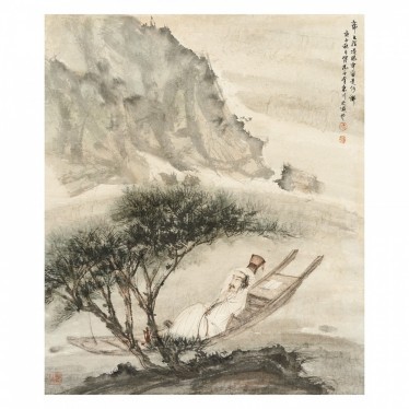 Fu Baoshi (1904-1965)SCHOLARink and colour on paper, hanging scroll, signed FU BAO SHI and with three seals67 x 84 cm (26 3/8 x 33 1/8 in)