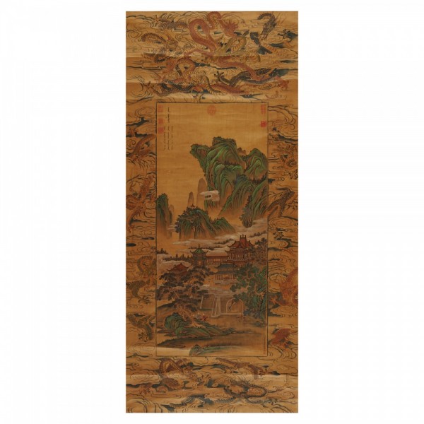 ink and colour on silk, hanging scroll, signed DONG BANG DA and with eight seals