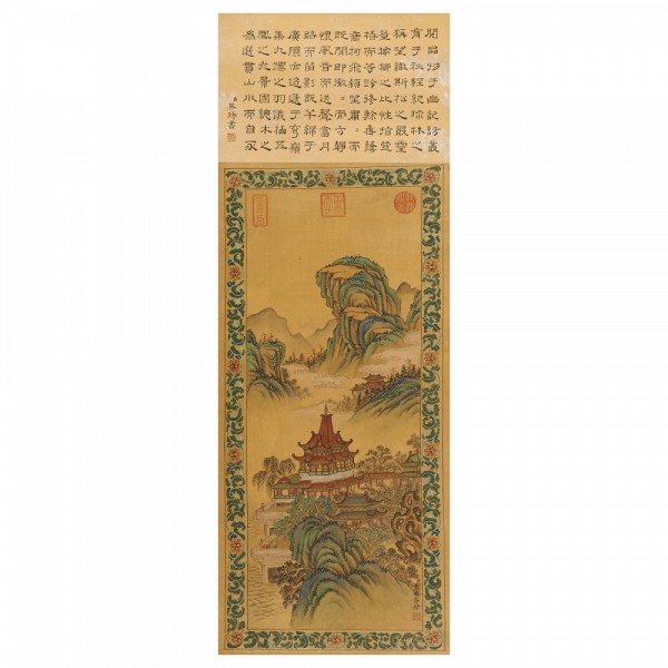 ink and colour on silk, hanging scroll, inscribed, singed YUN XI and with seven seals